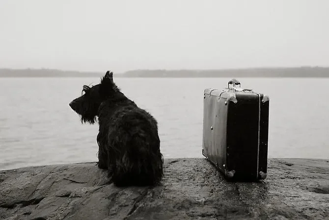 Fala joined President Rooseelt on many of his trips during World War II. Here Fala is waiting for a boat to take him on his new adventure